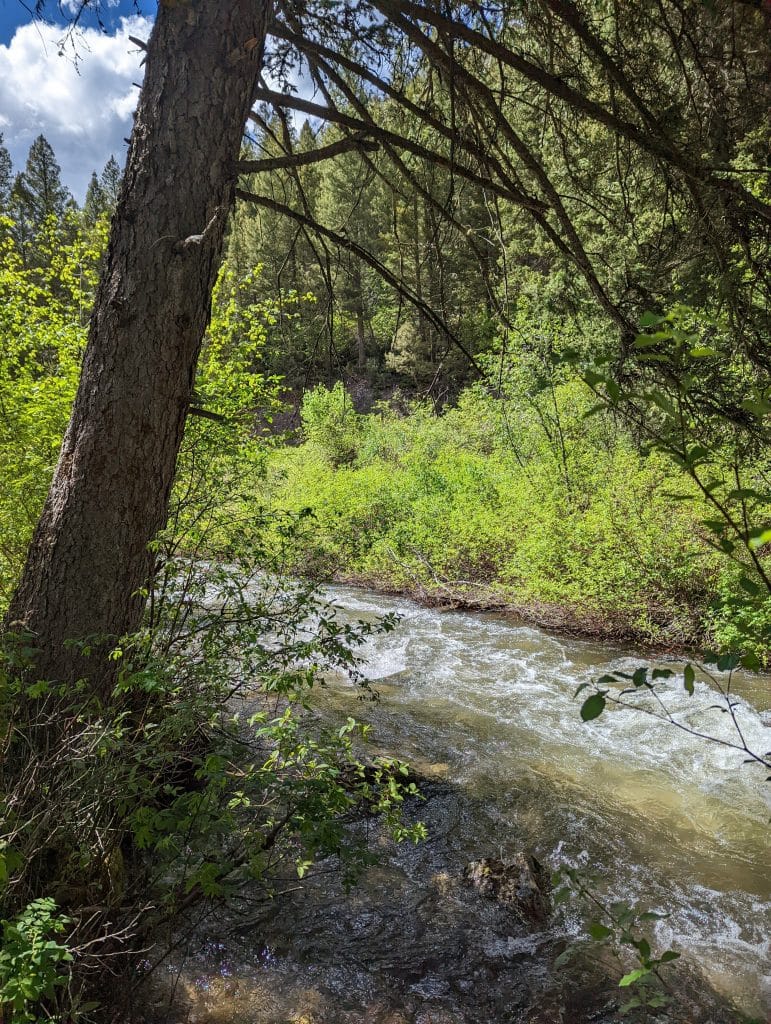 We had taken site 14 which turned out to be right on what used to be Squaw Creek. It has a new name now, Storm Castle Creek. The traffic on the road above us was nonstop with cars, trucks, OHRV, and other campers headed up to dispersed campgrounds above us. Too close to Bozeman we decided. At night the game camera caught a white booted bunny, and a bushy-tailed fox.