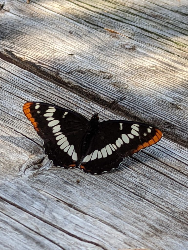 For the next three days and two nights there were no flies, mosquitoes, varmints, or rain clouds to penetrate our lives. A huge fire burned all day long without even the smoke being a problem. We did not hear a single man made sound the entire time. Purifying water from the river replenished our tank and bottles like we had done along the Wise River. Adding to the magic we were surrounded by hundreds of butterflies that came out both days as the warmth of the sun bathed the surrounding meadow in a radiant light. When you walked through a cluster of these delicate creatures that were massed on wet muddy areas on the ground they exploded into the air in a riot of colors, random motion, and flapping wings that elicited a smiling giggle.