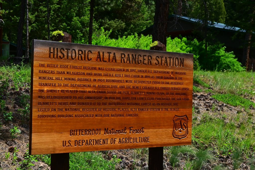 Checking in at the West Fork Ranger station we found out that the Magruder (Murder) Corridor was only open up to Paradise from the east. This is the corridor that Rebecca had read about and we had so hoped to be able to drive. We headed instead south to Alta campground and the home of the oldest surviving ranger station in the country, a rather small log structure that was built in 1899.