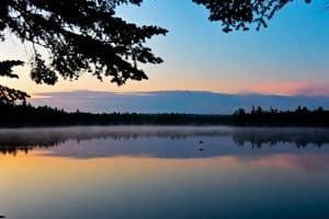 The resident loons are calling in the late crepuscular hours, a belted kingfisher chattering loudly has flown up to his roost in the “Vinny” tree