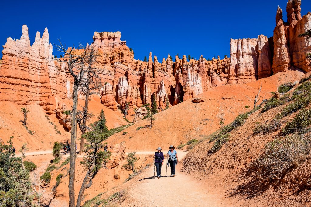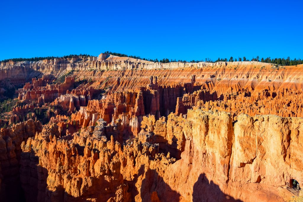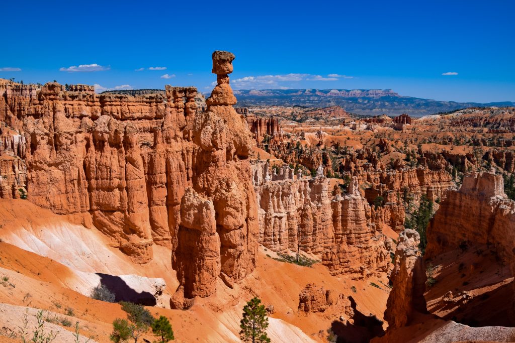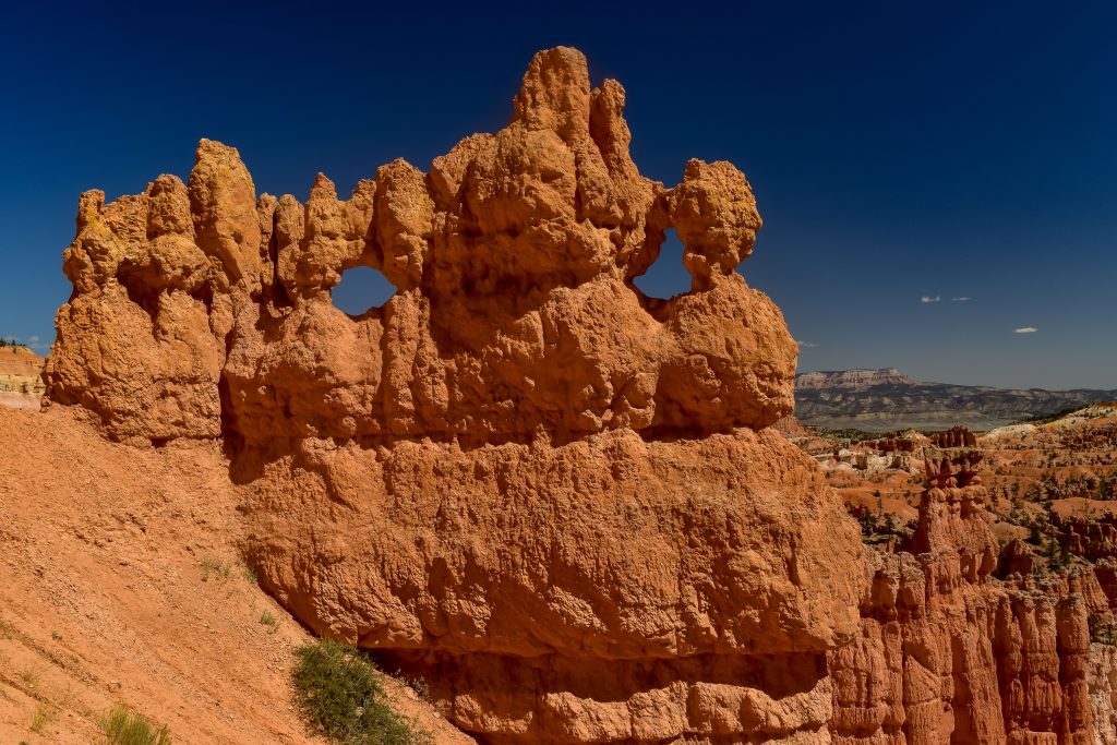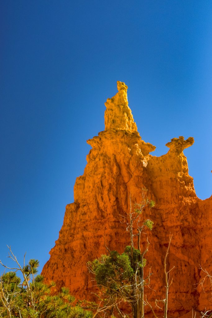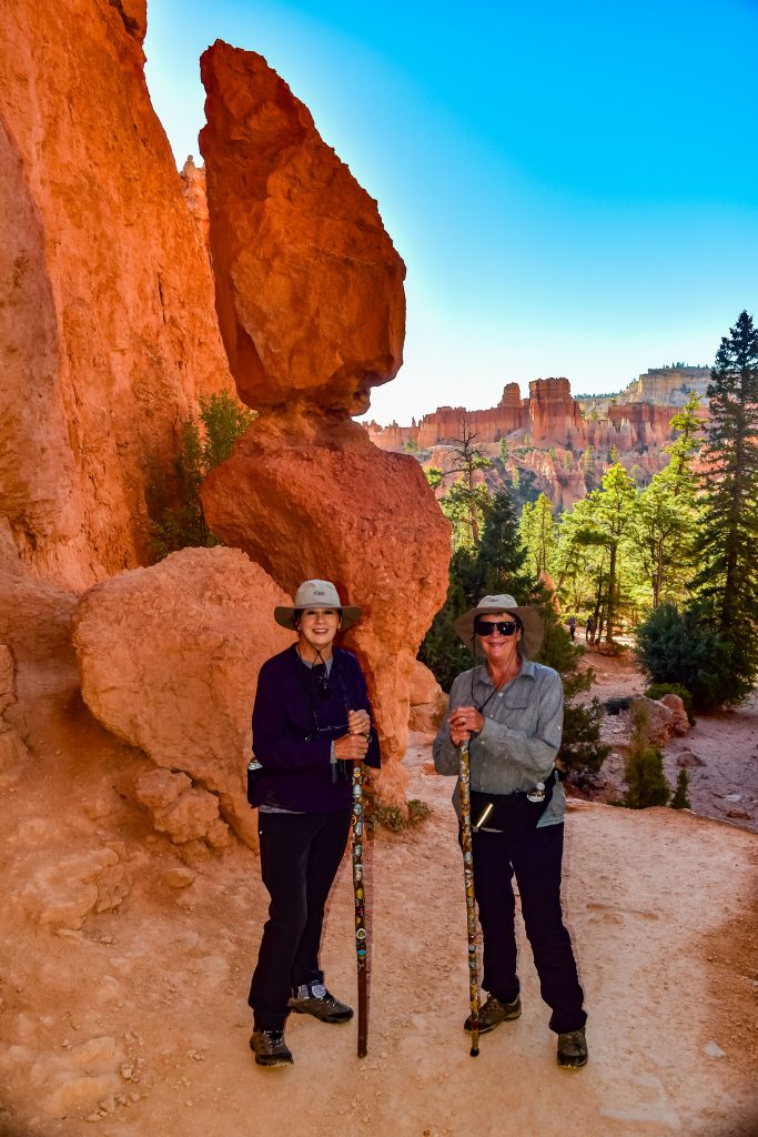 Our 8:15 AM arrival at Sunset Point snagged us an upfront parking at the trailhead and also meant no shuttle bus! We hiked down Wall Street then on to Queens Garden to see “Victoria” and finally 0.7 miles down and back on Navajo Loop to see “Thor’s Hammer”. Truly one of the most spectacular hikes anywhere. Even the most imaginably challenged person is gaped mouth at this wonderland. “Surreal, amazing, awesome, incredible, breathtaking, fabulous, thunderstruck”, are words muttered by the throngs of people held in a trance of gob smacked wonderment. Around each corner or even looking back at what you had just passed your mind garnered a different interpretive magnificence. God alone made this place as well as the rest of his creation to let us know he alone made all this by his spoken command. To wit, we should always give him thanks for our fragile, precious lives. Or, in human terms as the parks namesake Ebenezer Bryce said when asked about the canyon, “One hell of a place to lose a cow!”
