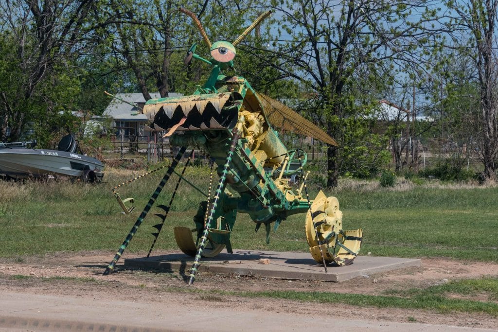 After passing by Whiteflat, Texas, which was named for the sea needle grass covering the plains, one comes to Matador, Texas. Stopping to eat at Billie Deans allows time to explore the site of Bob’s Oil Well, a landmark for the motorists during the 1940’s. As well as getting full service gas you could get groceries while the kids could see caged rattlesnakes, lions, monkeys, coyotes, and a white buffalo.