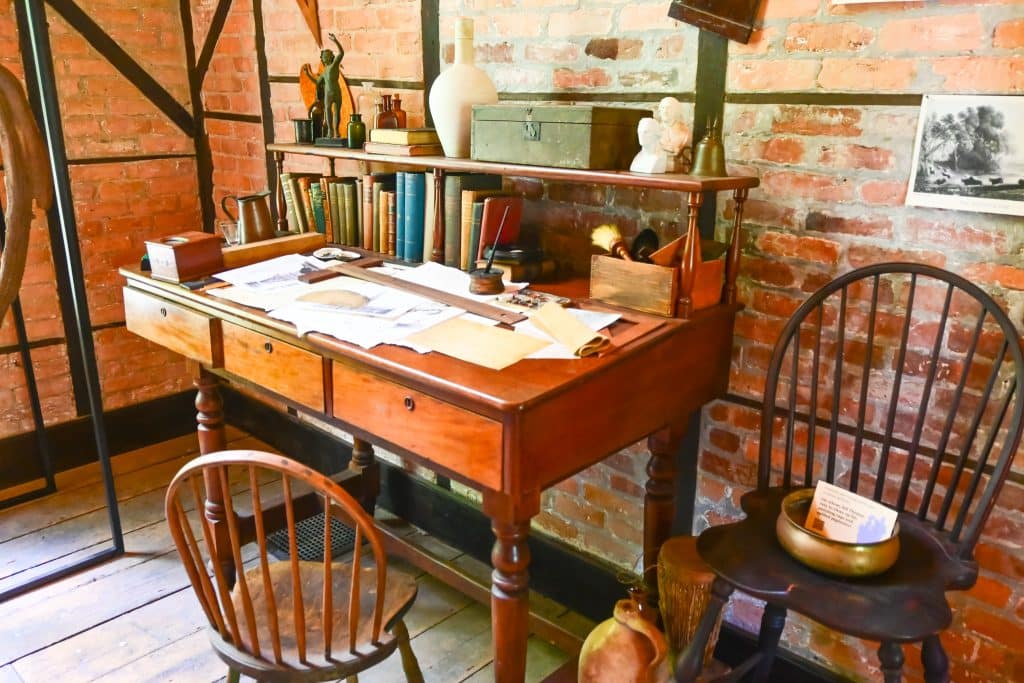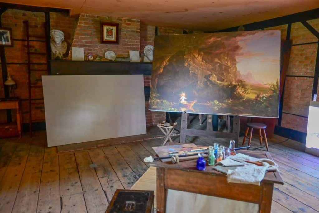 The Hudson River Valley school of landscape painting produced iconic paintings, some of mammoth proportions, of the natural beauty of our world. Distressed by the “the Cost of the empire” manifested in smoggy urban living of the American industrial revolution and “the ravages of the ax” (chainsaws would have really irked him!), they ironically resulted in the panoramic views of the Catskills where he created his often moody masterpieces. It was here at Cedar Grove (where he lived with his wife Maria) that “nature spreads a rich and delightful banquet” where he “mingled her soul with his soul” and Maria and Thomas found “happiness in such a small little spot”.