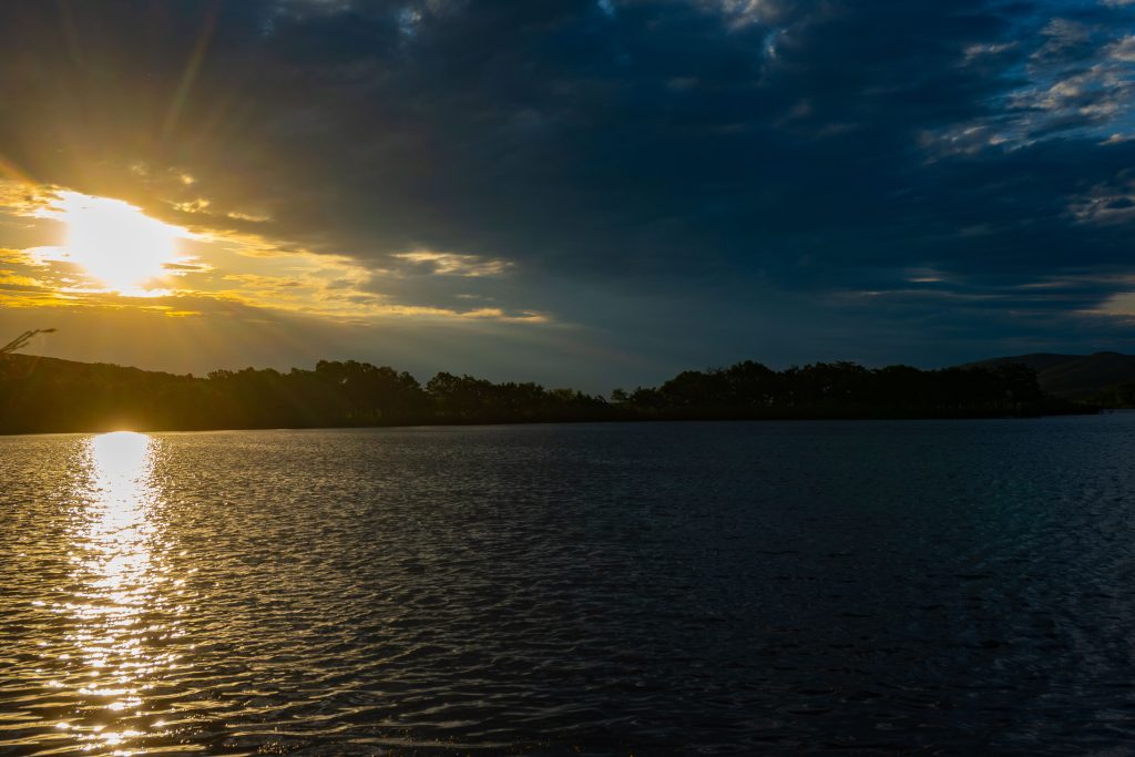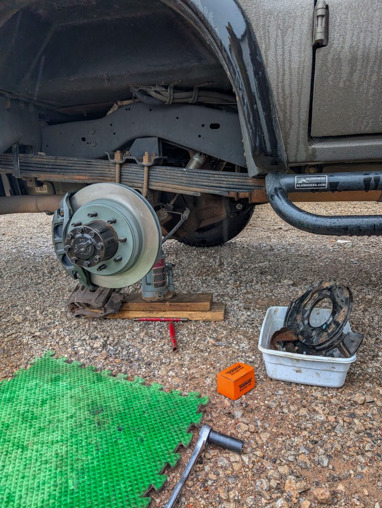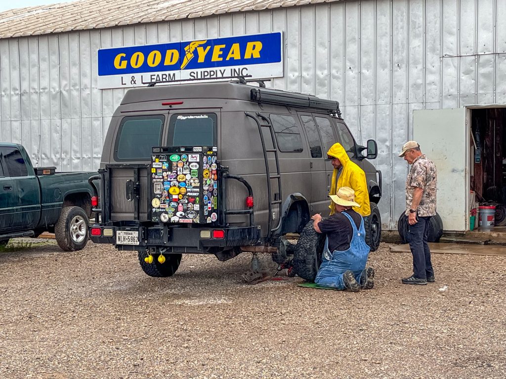 The next morning the sunrise looked to be wet and stormy. We picked up the van a little after noon and it was raining on Dale while he was trying to buckle up the final repairs.