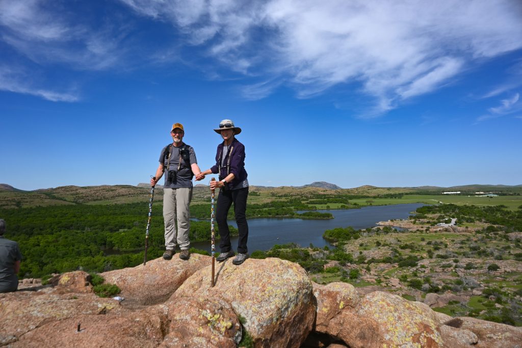 The trailhead for the second hike that day up to the top of Little Baldy mountain is located on the campground loop. Little Baldy Mountain trail is about one mile roundtrip and offers great full 360 degree views of Quanah Parker Lake and the main valley of the refuge. It is the one hike in the refuge that is mandatory. It had been a beautiful day!